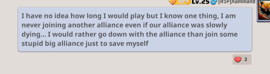 Major Game ChangesThe day finally came for Season 1. Everyone was very worried about it starting, but it was innevitable. So Season 1 finally started, on January 26, 2025, and changed the game forever. There were many things that changed at the start of Season 1. The map reset and now had more land to be claimed, new season buildings were added, professions were added, there was now such a thing as "the virus", the game now focused even more on having the server unified, and many more things. R1P liked some of these changes, especially the one with the map having more land. But they were still worried with a lot of the changes and how they will affect the game in the long run. But for now, they were determined on getting through Season 1 and learning all the changes that have been made. One of the biggest changes that R1P hated was one made by the server. The server created a new rule for Season 1 right before it started, where they created "Nap20". Nap, or Non-Agression Pact, means that any alliance in it cannot be attacked by any other alliance in the same server or else there will be major punishment. So "Nap20" meant that any alliance in the top 20 of the power ranking can no longer be attacked by any 988. This angered R1P. While they could still attack alliances below top 20, their main targets were now protected. Which included 0205. With this Nap20 being added, that would mean R1P's and 0205's rivalry would finally come to an end. While R1P still hated 0205, they were forced to no longer attack them. There were not many options for alliances under top 20 to attack, as most were either dead or extremely weak. So R1P was forced to adapt to the new rules and would have to try to fight with the server instead of fighting for themselves. Not all was bad, though. Season 1 actually turned out to be pretty fun after R1P learned how to play it. The new game mechanics was a big upgrade from Season 0. Especially "the virus" that was added. People now had a resistance, which they had to build up if they wanted to attack more zombies and enemies. If someone with very low resistance attacked something that required a ton of resistance, then they would not only lose the battle but would also "get infected". The more you do that, the more "infected" you get. You can get so infected where your base will "blow up" and spread the virus to bases near you and your base would be teleported to a random spot. To counter this, alliance members could send scouts to "cure" the infected base. They could do this as much times as they want, so everyone made sure to always keep on eye out for infected bases. This proved to be one of the fun things of Season 1. They would certainly miss Season 0, but they were starting to get used to Season 1. They started to like it as well. Perhaps they were wrong about Season 1 and it will actually be very good for the time it will be here.R1P and Server Drama Part 2It was clear that with Season 1 rolling around after 3 months of Season 0, Papalitoma was long gone. This was not the case with BiggFella. He was still somewhat around. It seemed for a while he was gone as well but there was evidence of him still playing from world chat and other things. It eventually became clear that he still did indeed play, as it was discovered that BiggFella was now the leader in a new allliance called [TSOs] The silent Outsiders. It was a pretty small alliance at first, but it slowly got stronger and stronger. It would never be as successful as NWO9, the alliance BiggFella formerly led, but it was still pretty good. BiggFella would lead this alliance for a while, with it eventually getting close to surpassing R1P in alliance power. But one day, it was discovered that there was more with BiggFella and the accident that happened a few months ago already. This would cause the server to "ban" BiggFella once again. With him losing his leader position once again because of the exact same reason that happened to him in NWO9. He was tricked into giving his position to someone else which resulted in them stealing it and him getting kicked out once again. Some people never learn. BiggFella would be attacked many times after this happened, while he was complaining in world chat about how dumb the server is and many similar things. Eventually, it all started to cool down and BiggFella was starting to look for a new alliance to be in. This would cause R1P to take interest. For this situation, R1P did think BiggFella was innocent and deserved another chance in the game. They also wouldve liked to have a strong member to be in their alliance, which BiggFella certainly was. After a while of talking to him, BiggFella eventually agreed in joining. And so, R1P became his new home. He immediatly thanked everyone in R1P for letting him join, definently very thanful to have a new home. He also changed his name and profile picture just to be safe, in case people try to attack him again. BiggFella would be in R1P for a little while before people found out that it was him. Once everyone figured that out, they started to attack him again. The big alliances were ordering R1P to kick BiggFella out, or else they will destroy everyone in R1P. So R1P complied and kicked him out. They were very sorry to kick him out, but they didn't want the alliance to be destroyed. They informed BiggFella about this and wished him well in this game. The big alliances would then lecture R1P on not letting people like BiggFella into their alliance and also told them how what BiggFella apparently did was indeed true. After this happened, R1P's already not very good reputation with the server became a lot worse. R1P would learn from this mistake and swore to never do it again. BiggFella's former alliance, The silent Outsiders, would continue to be led by someone else. Just like NWO9. They would later be renamed to [Reb2] TripleAPatriots.The Very Close Death of a Beloved MemberSiren, the now Butler of the alliance, would become a very respect